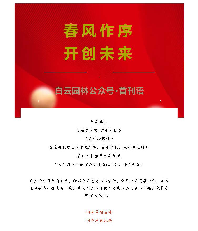 春風(fēng)作序 開創(chuàng)未來 | 白云園林公眾號上線啦