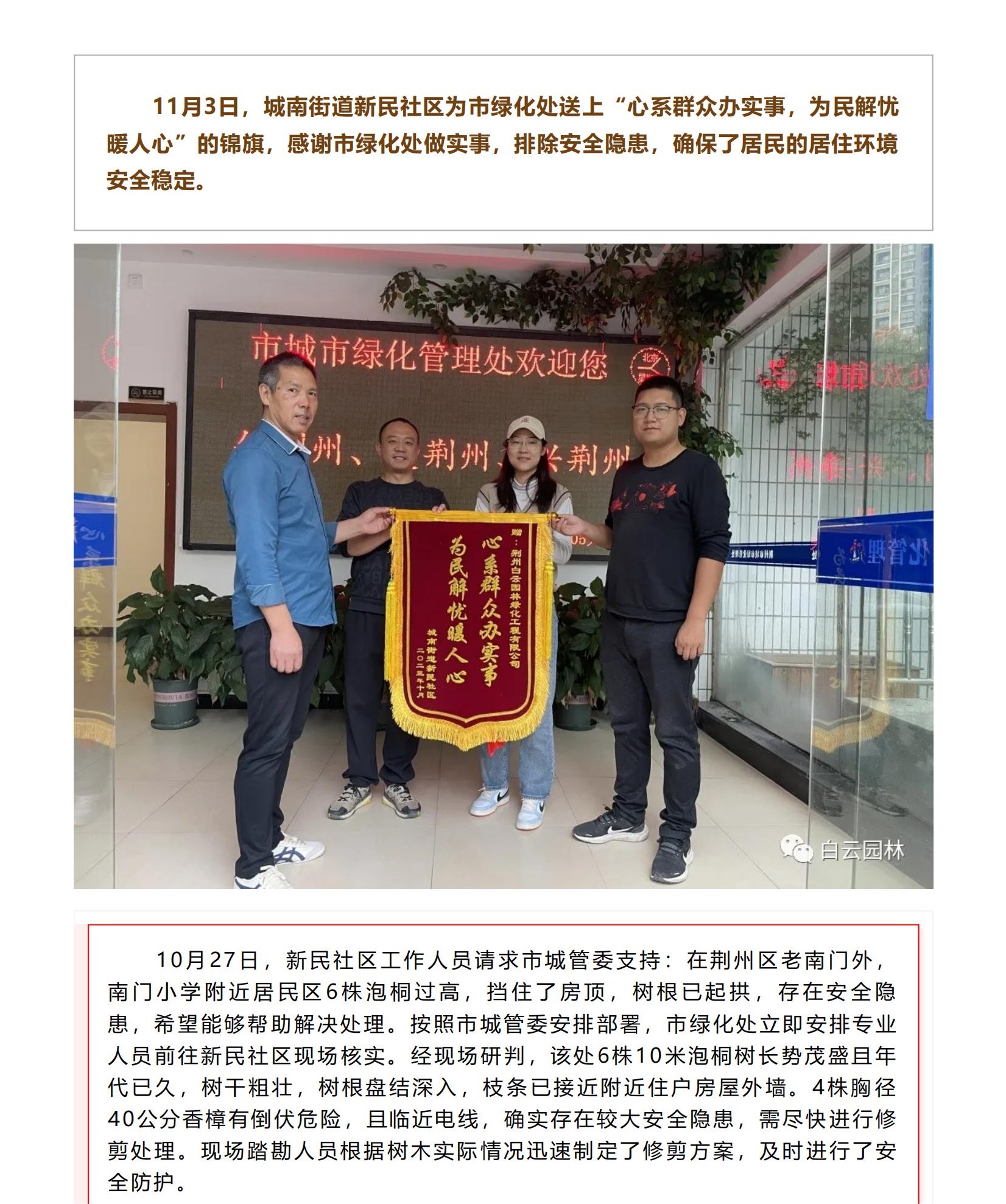市綠化處|為民解憂除隱患,及時處置獲錦旗